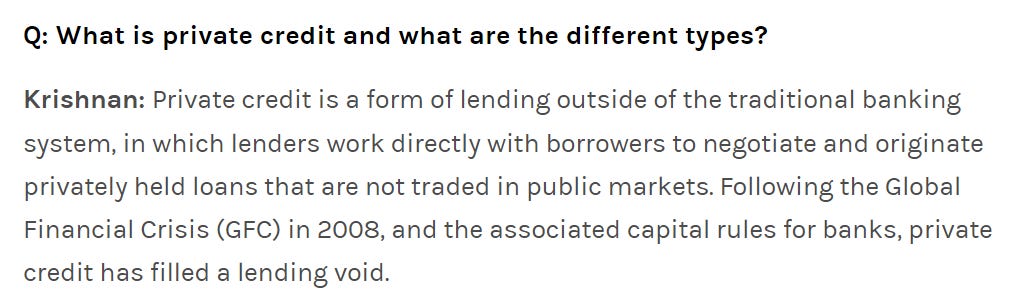 Q: What is private credit, and why is it growing so rapidly?