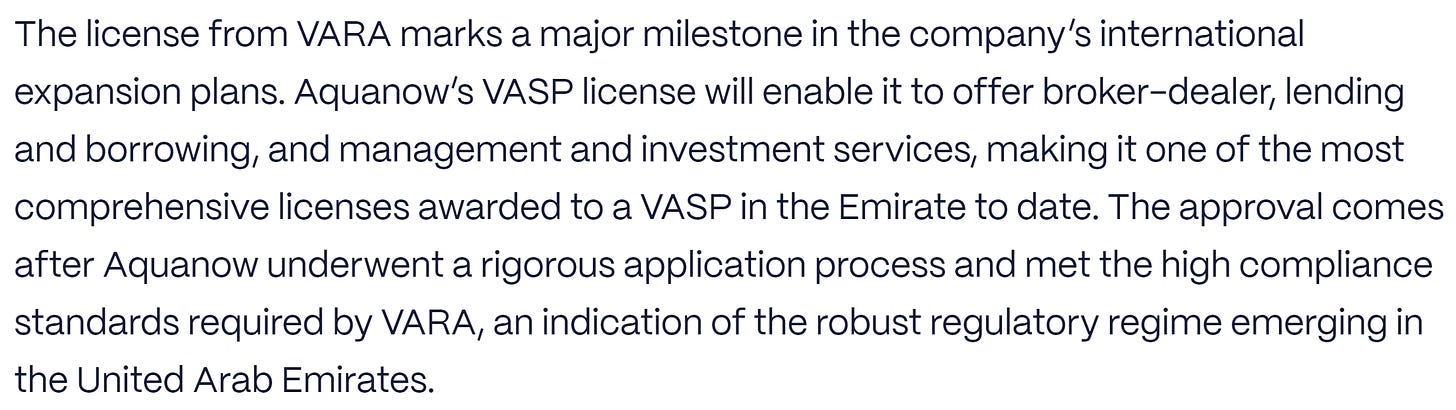 Our team has worked tirelessly to meet the stringent requirements set by VARA, demonstrating Aquanow’s dedication to compliance and a belief in the potential of virtual assets to revolutionize financial services. The regulatory environment here is not just about oversight but about fostering a collaborative space where technology and finance intersect to create new possibilities.